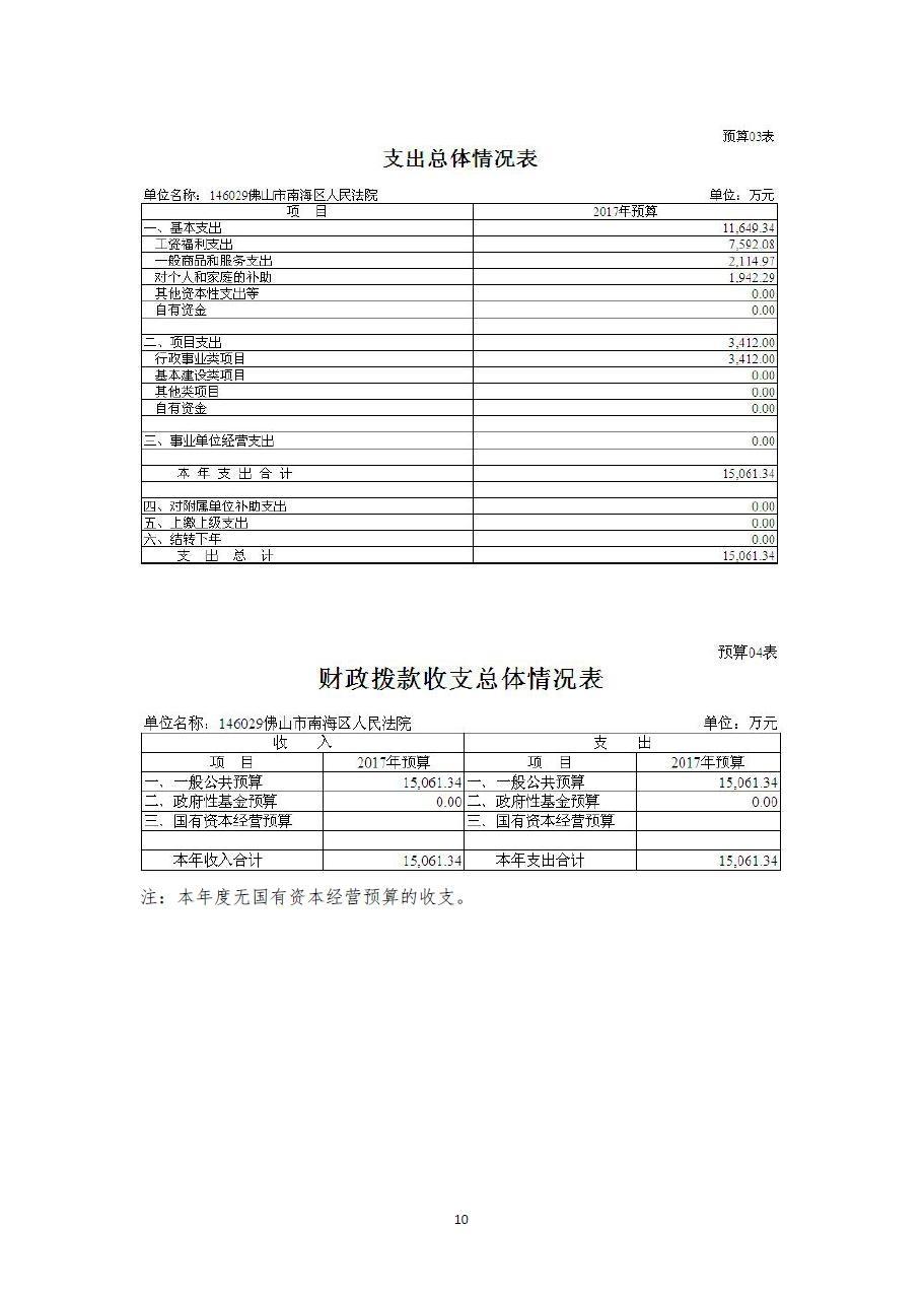 2017年度佛山市南海区人民法院预算公开