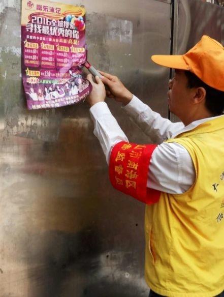 他,虽然左手不方便,但因工作需要常常拿着小铲子清除“牛皮癣”。强哥是一名残疾人士,因左手残缺而装上了假肢,但他没有为此而影响正常的工作。他每天在鄱阳路等多条道路巡查、一旦发现有乱张贴的问题,就会拿着小铲子进行清理。强哥表示非常喜欢这份工作,虽然自己是残疾人,但在城市管理中能贡献自己的一分微薄之力,是一件十分荣幸的事情。
