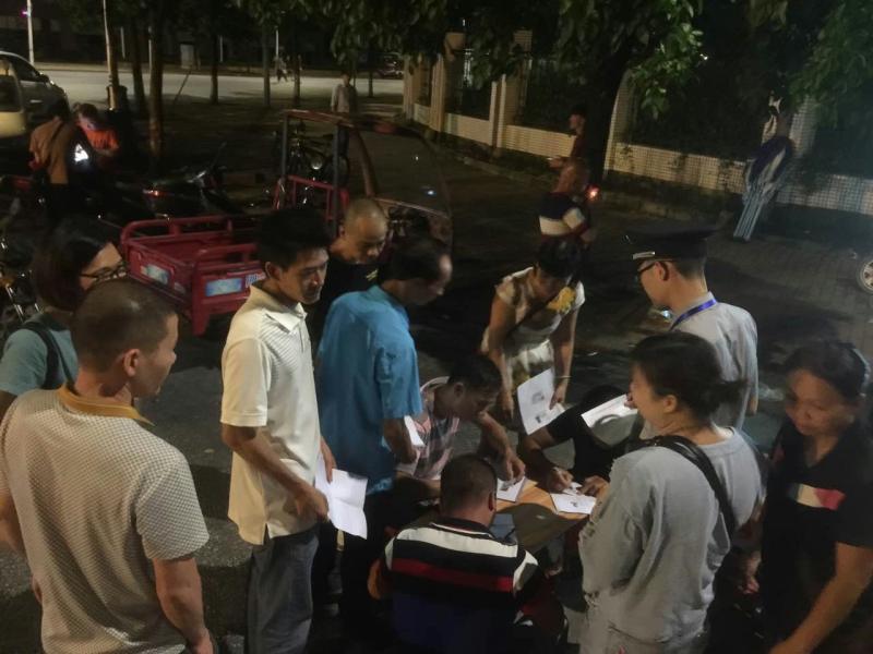 为规范临时摆卖点秩序,更好地管理临时摆卖点,7月5日晚,丹灶城管局对丹灶环保学院旁的临时摆卖点小贩进行摸底登记,并对城区内烧烤档占道经营行为进行整治。据了解,丹灶环保学院摆卖点因人流聚集,小贩数量达30档,且小贩流动较快。为加强对该摆卖点的管理,更好地维护摆卖点秩序,丹灶城管局组织执法人员对小贩们的身份证、联系方式等资料进行了逐一登记,便于日后摆卖点的秩序规范管理。另外,执法人员在进行夜间巡查时,还发现一烧烤档存在严重占道经营的行为,该烧烤档有固定店铺,但店主为求谋利,把大部分的经营用品摆放在店铺门前,占用停车位,阻碍了行人和车辆通行,执法人员当即责令店主将占道物品搬离,并对其派发《责令限期整改通知书》。