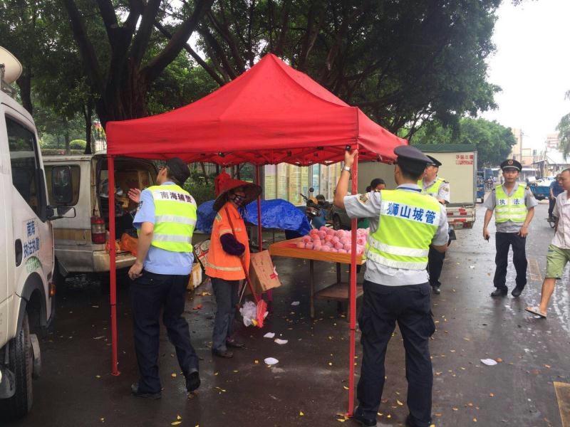 9月21日上午,由狮山城市管理局副局长白涛强带队,带领罗村中队执法人员和狮山城市管理局各股队的支援人员、特勤队、劝导员,巩固中南市场创文整治成效,对中南市场场内的“八乱”进行清理整治,并对其周边富安花园和联星社区的无照乱摆卖进行取缔,行动共清理取缔小贩16宗,暂扣经营物品一批。