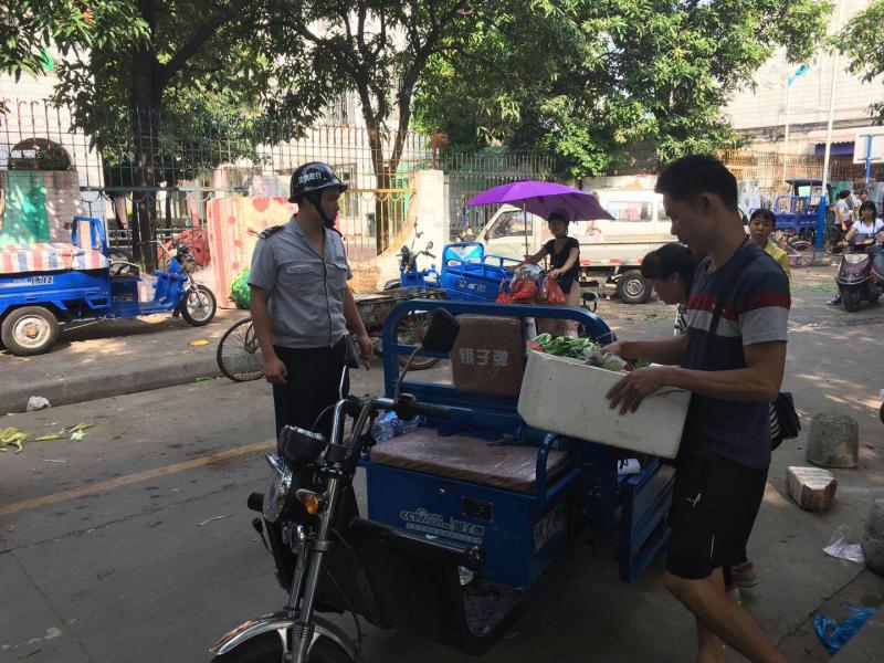 岐丰市场周边路段“早市”摊贩乱占道、乱摆卖现象严重,影响市民的出行,也影响了城市的市容市貌。2017年10月12日上午,为了整治“早市”乱摆卖的顽疾,还市民一个干净整洁的环境,大沥城市管理局组织执法人员对岐丰市场周边路段开展突击整治行动。