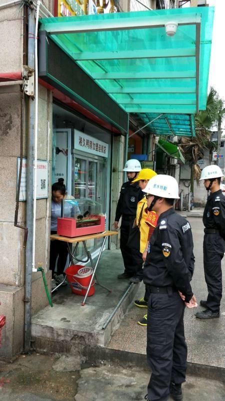 为增强市容环境整治执法力量,里水在原有的“三合一”管理基础上再作延伸,将“4050”城市文明劝导员及特勤人员巡查范围扩阔到工地、集贸市场等,实行定点巡查,构成了“城管+劝导员+特勤员”三合一的综合整治队伍,有效遏制城市乱象的苗头,实现“前期劝导介入,后期执法整治”的治理格局。
