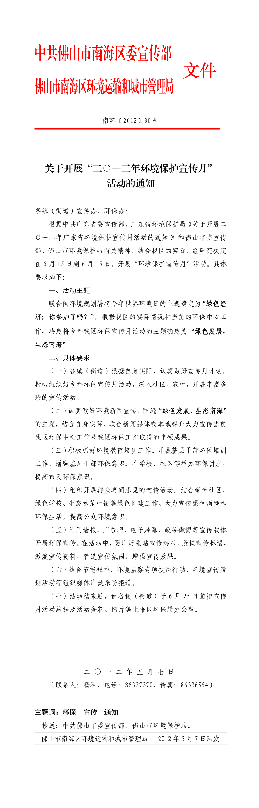关于开展“二○一二年环境保护宣传月”活动的通知