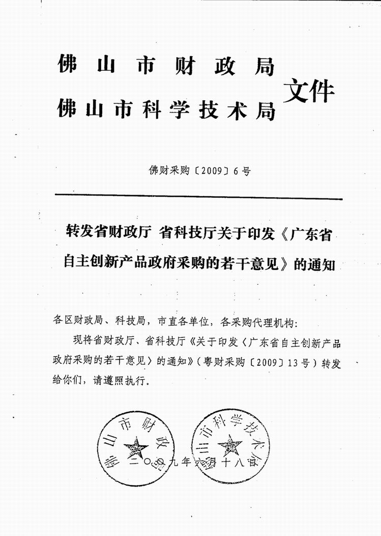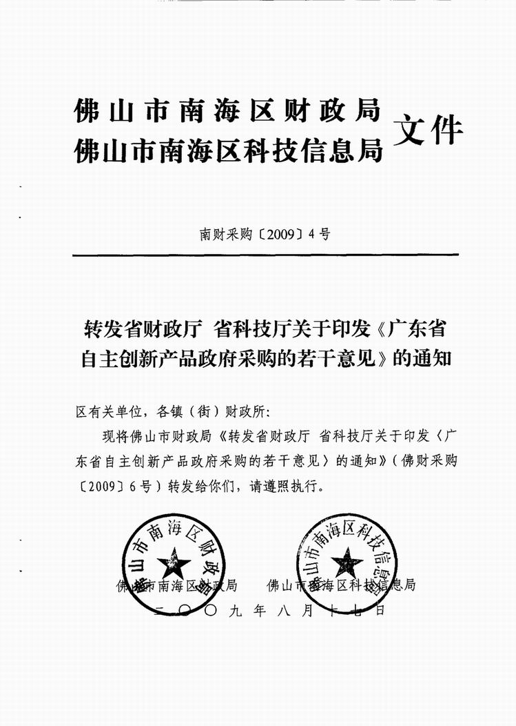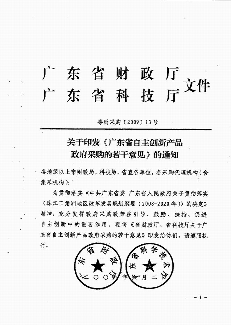 转发省财厅 省科技厅关于印发《广东省自主创新产品政府采购的若干意见》的通知(南财采购[2009]4号)