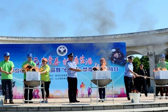 6月22日上午,南海集中销毁毒品暨“6·26”禁毒宣传开放日活动在九江儒林广场举办,500多名市民通过徒步行向市民宣传禁毒知识。