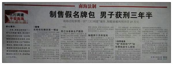 【三打两建】制售假冒LV钱包 男子获刑三年半