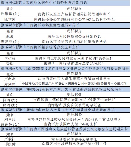 珠江时报讯(记者/蒋雨文 通讯员/基石) 今日,南海区公选19名副科级领导干部的考生综合成绩和各职位的差额考察对象名单向社会公布,按照各职位12的比例,共有38名考生确定为差额考察对象。